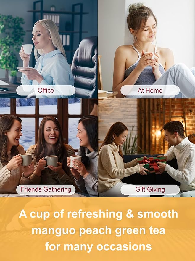 - [FLAVORED GREEN TEA] - Green tea offers a smooth, brisk flavor with a subtle sweet aftertaste. Sweet, tropical mango and juicy peach fragrances add a lively, tropical twist to the green tea, making it a refreshing and flavorful tea drink. The fragrance is delicate yet distinct, bringing a touch of summer into every cup.