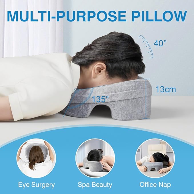 Face Down Pillow for Bed, Massage Headrest Face Pillow After Eye Surgery, Memory Post-Eye Recovery or Beach Tanning, Prone Sleepers with Breathable Design, Removable Grey Cover(Light Gray)