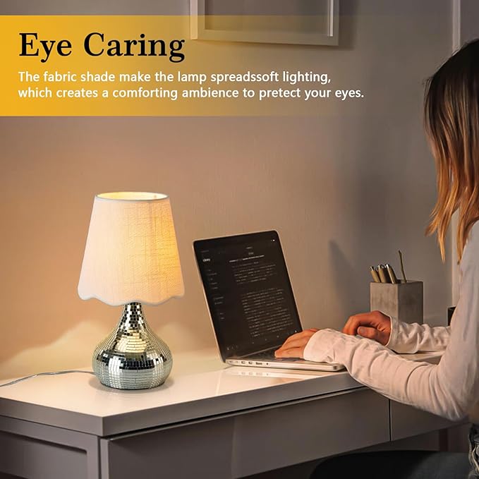 - 【Versatile Home Lighting】 With its simple design, this small table lamp is suitable for decorating any corner of your home, especially in the bedroom, living room, study room, kids' room, nursery, office, or dorm. Featuring a white linen shade and a mosaic chips metal base, this bedroom lamp is an ideal Christmas gift for your family and friends.