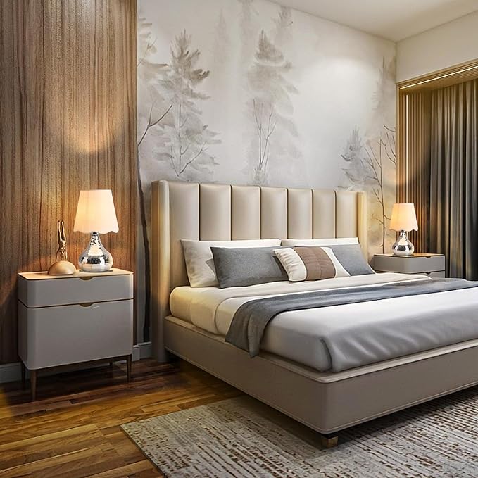 - 【Funky Table Lamp Decor】 This aesthetically pleasing table lamp is crafted with a beige linen shade, boasting an elegant and timeless design. Its design not only adds to its aesthetic appeal but also serves a practical purpose by precisely directing the light where it is needed. The modern-inspired design and compact size make it a must-have home decor item for your bedroom nightstand.