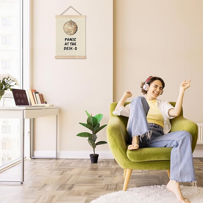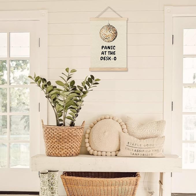 Exqcom Funny Office Decor, Panic at the Desk-O Wall Art Poster, Retro Trendy Y2K Disco Ball Mental Health Posters for Office Workplace Workroom Home Decor, 12x16 Inches