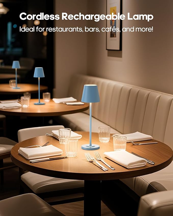 LED Cordless Table Lamp Rechargeable, 3-Height Adjustable, 5500mAh Battery Operated Lamp, 3-Color Dimming Touch Lamp, Portable Lamp for Dining, Bedroom,Camping, Outdoor, Indoor(Blue 1 Pc)