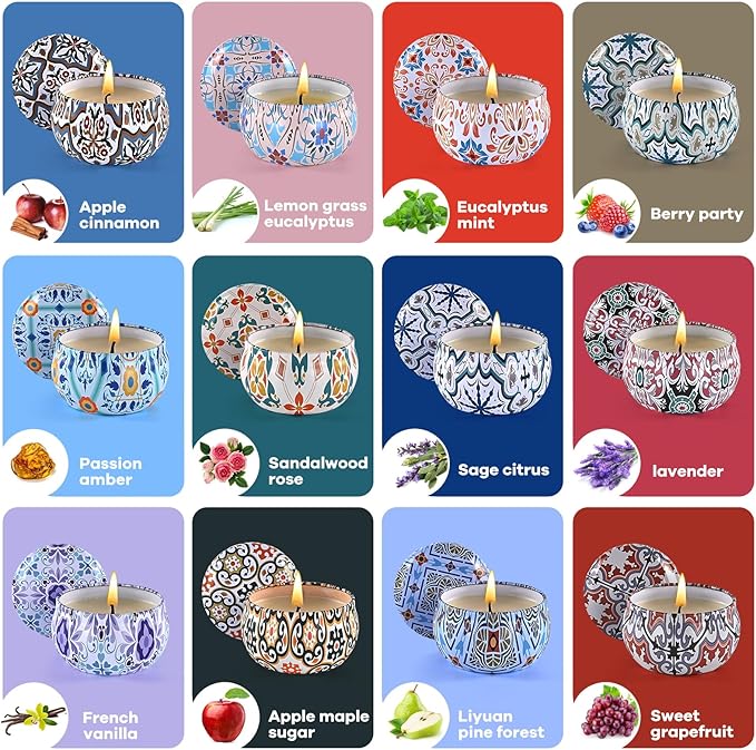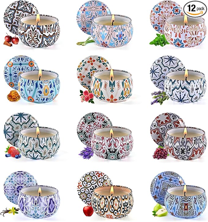 - Long Lasting Time: Scented candles are a powerful tool for people to unwind and recharge, Each soy candle contains 2.5 ounces, The total burn time for 12 scented candles is approximately 240 -300 hours for soothing aromatherapy, You can also trim the candle wick to extend its burning time