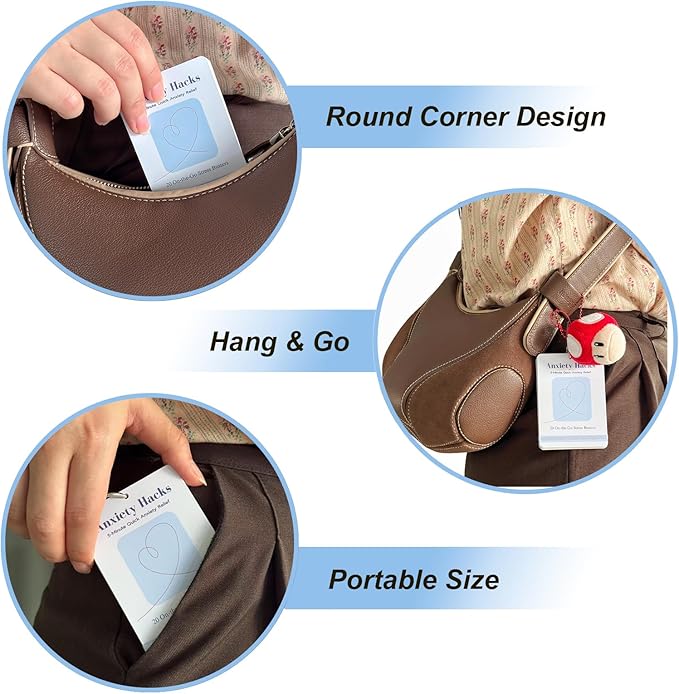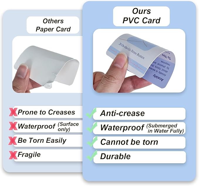 - 👜Portable for On-the-go Quick Access👜: Made from high-quality PVC, these mental health cards are waterproof, bend-proof, and long-lasting. The included metal ring keeps them organizing and portable—perfect for tossing in your bag, slipping into a pocket, or hanging up. Their pocket-sized (3.5 x 2.5 inches) design ensures quick and easy access anytime, whether at home, in the office, at school, during your commute, in therapy, at yoga, before bed, or wherever you need them.