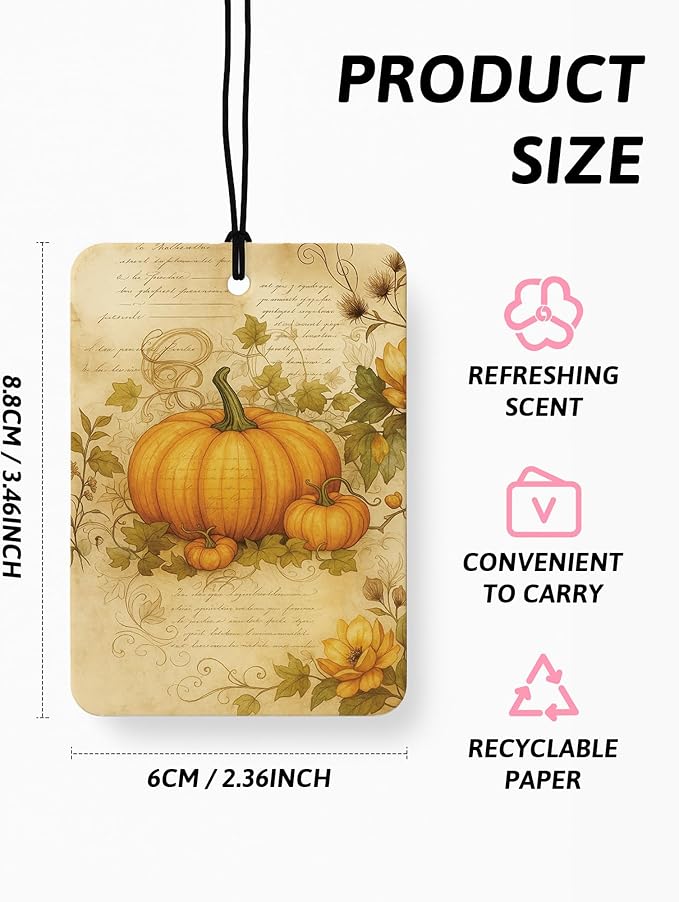 Vintage Fall Pumpkin Car Air Freshener 4 Pcs, Retro Floral Pumpkin Autumn Hanging Air Freshener for Cars Closet Drawer Books, Fall Car Accessories Mirror Decor for Women