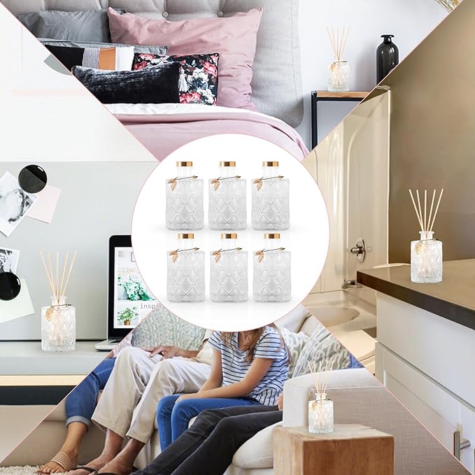 - Exquisite Design and Complete Set: This set includes 6 gracefully - shaped glass bottles, perfect for adding an elegant touch to any space. Each bottle comes with a matching stopper to seal the opening. Additionally, you'll receive 40 high - quality reed diffuser sticks and 6 sets of metal leaf - shaped hanging ornaments. The combination of these elements creates a harmonious and aesthetically pleasing set that's both functional and decorative