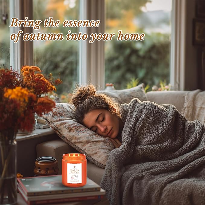 - Embrace the Essence of Autumn: Our vanilla pumpkin scented candle fills your space with a delightful blend of vanilla, pumpkin, and clove. The warm, inviting aroma creates a cozy atmosphere reminiscent of crisp fall days and festive gatherings, will transform your home into a cozy sanctuary, ideal for the fall season