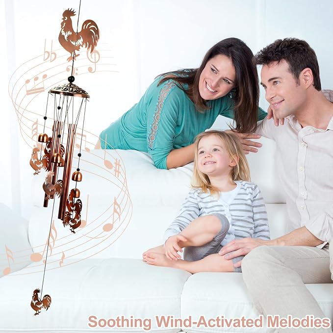 Copper Tone Animal Wind Chimes for Outdoors/Indoors - Rooster Designs - Garden, Patio, Yard, Home Decor, for Women, Men, Mom, Birthday, Memorial, Housewarming (Rooster)