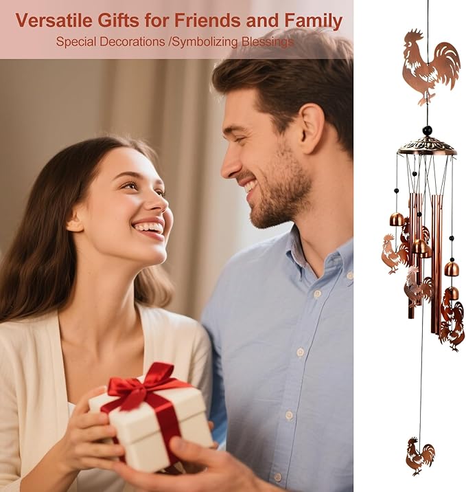 - ăRustic DesignăFeaturing a striking reddish-copper color palette and artfully aged patina, our wind chimes blend vintage charm with timeless durability. The weather-resistant materials ensure long-lasting beauty, while the rustic aesthetic complements gardens, porches, and modern home dĂ©cor seamlessly.