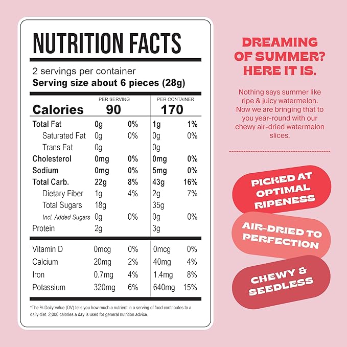 - Naturally Sweet, Gluten-Free Goodness: These dried watermelon slices have no added sugars and are certified Non-GMO and gluten free, delivering a healthy fruit snack that fits almost any lifestyle. Whether you’re avoiding added sugars or looking for wholesome gluten free fruit snacks, dried fruit with no sugar added, or real fruit snacks, our air dried watermelon slices offer a more nutritious option the whole family can enjoy.