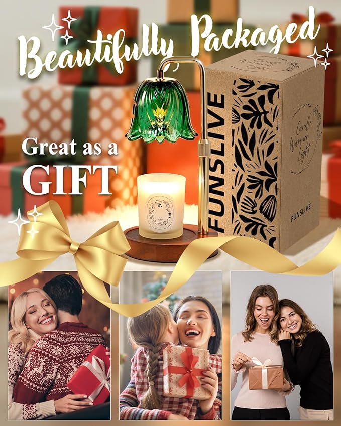 - Dimmable Brightness for Perfect Ambiance: Customize your lighting experience with four brightness levels,twenty-five, fifty, seventy-five, and one hundred percent, to create a warm,inviting ambiance in your living room,yoga spa, or cozy reading nook while scented candles warmer gently melts your favorite candle for a longer-lasting scent,A perfect gift for women, mom, wife, sister, aunt, bestie, or girlfriend