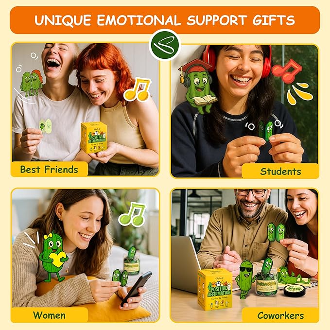 - Teen Girl Gifts Trendy Stuff: Start each day with back to school gifts for teen girls that turn emotional messages into giggles! This emotional support pickle jar delivers positivity cards gifts for teenage girls, a quirky alternative to an emotional support plush or pickle things for funny desk decor