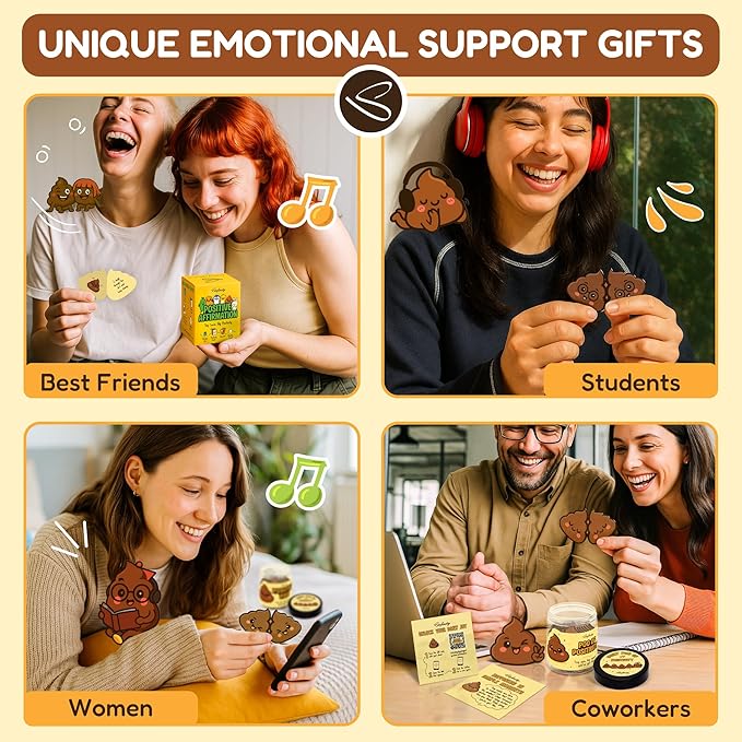 - Emotional Support Poo Gifts: Brighten every day with a dose of fun! This funny poop gift is filled with daily affirmations for women, and positive messages in a jar to help you flush away stress and boost your mood with a giggle.
