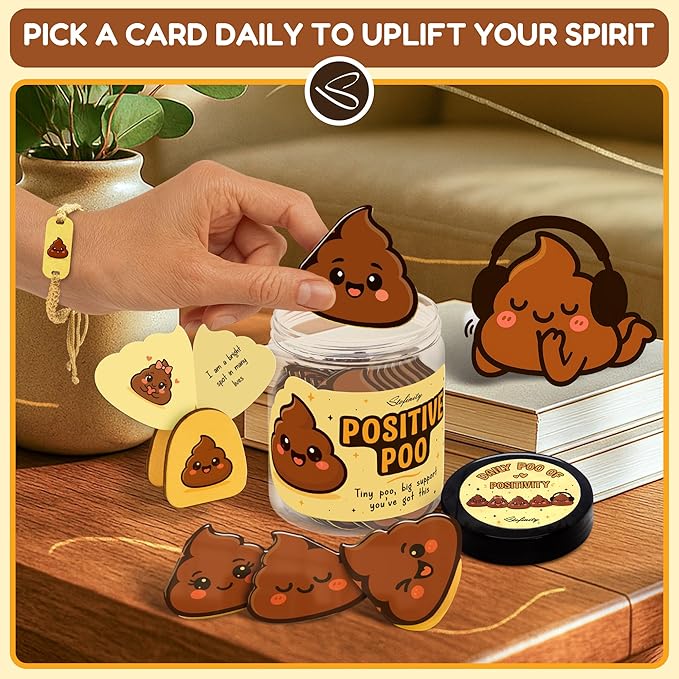 - Set Include:This cheerful set includes 1 positive jar, 60 hilarious and heartfelt poo quotes, and a matching bracelet. A true jar of affirmations filled with affirmation cards for teens, and thoughtful motivational cards to inspire joy.