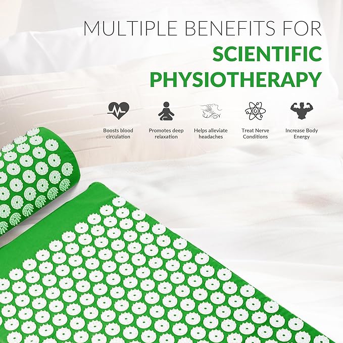 Fitvids Acupressure Mat and Pillow Set for Back/Neck Pain, Acupuncture Products to Relieve Muscle Fatigue, Improve Insomnia for Sedentary People, Acupuncture Eases Stress, Massage Mat, Green