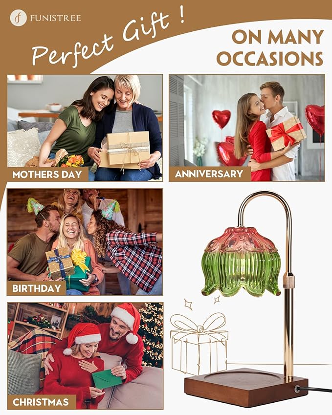 Candle Warmer Lamp with Timer Dimmable, Height Adjustable Birthday Gifts for Women Mom House Warming, Home Decor, Lotus Flower Candle Lamp Warmer 2 Bulbs Inc (Pink Green)