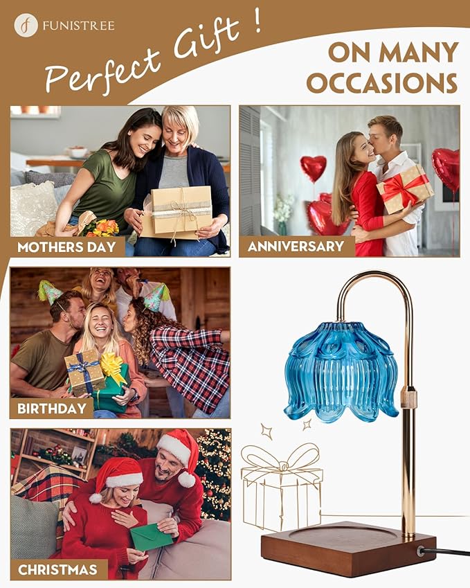 Candle Warmer Lamp with Timer Dimmable, Height Adjustable Birthday Gifts for Women Mom House Warming, Home Decor, Lotus Flower Candle Lamp Warmer 2 Bulbs Inc (Blue)