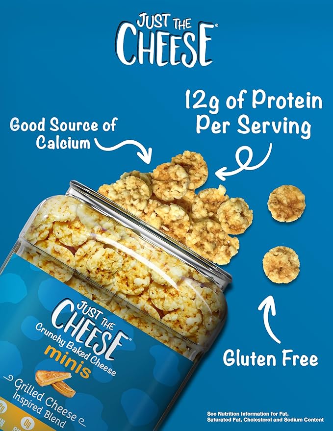 Just the Cheese Minis – Grilled Cheese Crisps, 10 oz Jar, Delicious Low-Carb Lifestyle Protein Chips, High-Protein, Gluten-Free Crisps, Keto-Friendly, Zero Sugar, Perfect Snack for Adults