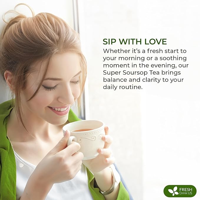 FreshDrinkUS, Super Soursop Herbal Tea ā 40 Tea Bags | Soursop, Ginger, Turmeric, Lemongrass, Cinnamon, Black Pepper & Peppermint | Caffeine-Free, Natural Flavor, Plant-Based Blend | Sugar-Free