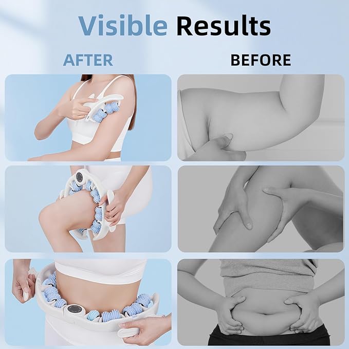 - [Deep-Tissue Massage with Multi-Roller Design]: Our circular leg clamp roller features multiple ergonomic rollers that mimic deep kneading. It effectively stimulates fat tissue, helps reduce the look of cellulite, boosts skin elasticity, and leaves your body feeling firmer and smoother