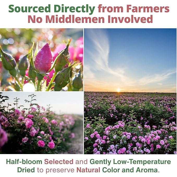 - 【Food-Grade & Edible】Premium dried rose petals edible—carefully selected and naturally dried. No additives, no artificial colors, caffeine-free, vegan. Perfect food grade rose petals for everyday kitchen and craft use