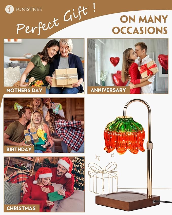 Candle Warmer Lamp with Timer Dimmable, Height Adjustable Birthday Gifts for Women Mom House Warming, Home Decor, Lotus Flower Candle Lamp Warmer 2 Bulbs Inc (Strawberry)