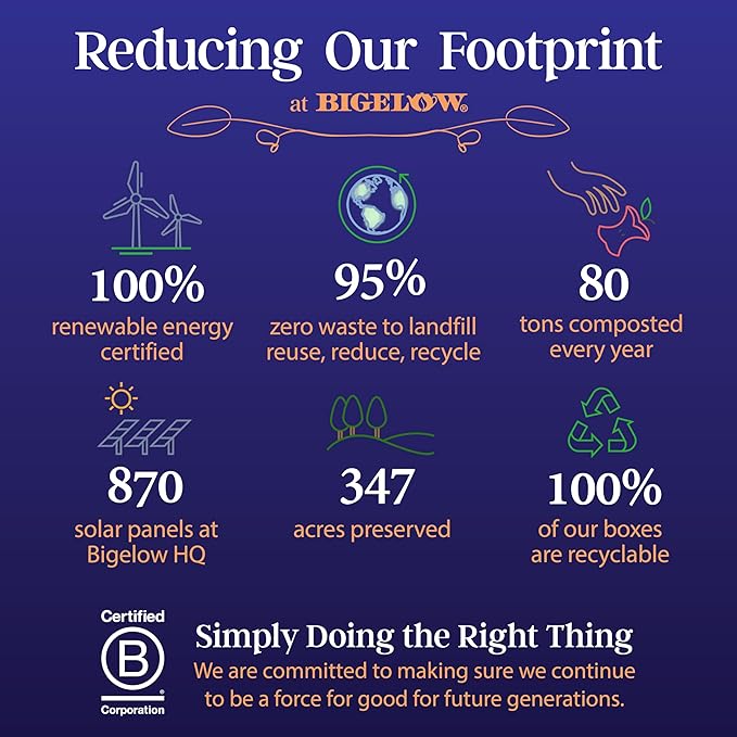 - Uncompromised Quality: Since 1945, Bigelow Tea has been a leader in premium tea and proud to be a Certified B Corporation - meeting the highest verified standards of social and environmental performance, transparency and accountability