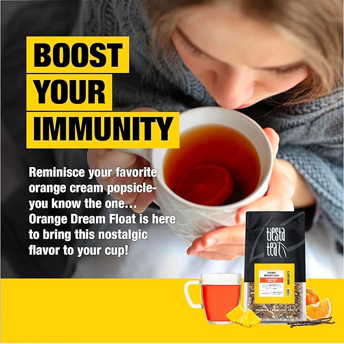 - CAFFEINE-FREE AND REFRESHING ANYTIME: Enjoy the sweet and tangy goodness of Orange Dream Float without the jitters! This herbal tea is caffeine-free, making it the perfect tea leaves to brew for any time of the day. Whether you need a morning pick-me-up or a soothing evening drink, this citrusy blend will keep you refreshed and energized.