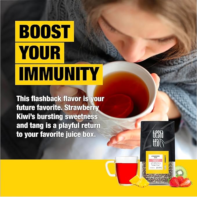 - NOSTALGIC STRAWBERRY KIWI FLAVOR EXPERIENCE: Indulge in the perfect blend of sweet strawberry and tangy kiwi in every sip. This refreshing tea captures the best fruity flavors, evoking memories of carefree days. Whether you're craving a fun pick-me-up or a moment of relaxation, the delightful balance of sweetness and tang makes each cup a joy to enjoy.