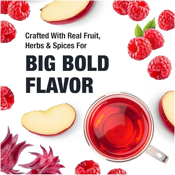 - NATURAL AND IDEAL FOR ALL LIFESTYLES: Savor the goodness of Raspberry Razzle, a premium herbal tea that's 100% gluten-free, vegan, and vegetarian. Each tea bag contains a burst of vibrant and flavorful experience of raspberries and hibiscus, offering a refreshing moment that’s as indulgingly soothing as it is delicious.