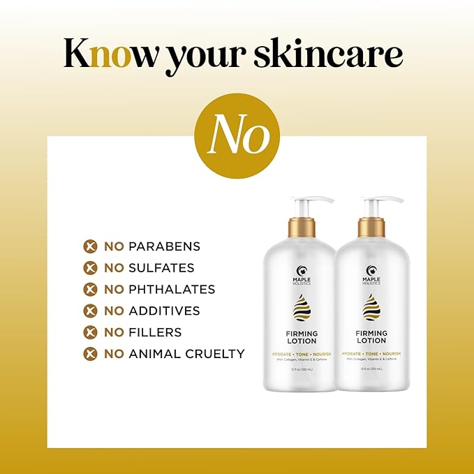 Maple Holistics Skin Firming Body Lotion for Women - Caffeine & Collagen Body Lotion with Hyaluronic Acid for Dry Crepey Loose Skin and Cellulite (2 Pack)