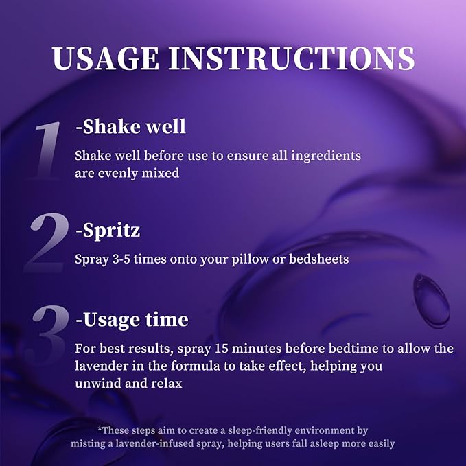 - NATURAL SLEEP AID: Lavender-infused sleep spray with no chemical drugs, designed to help promote relaxation and better sleep quality.