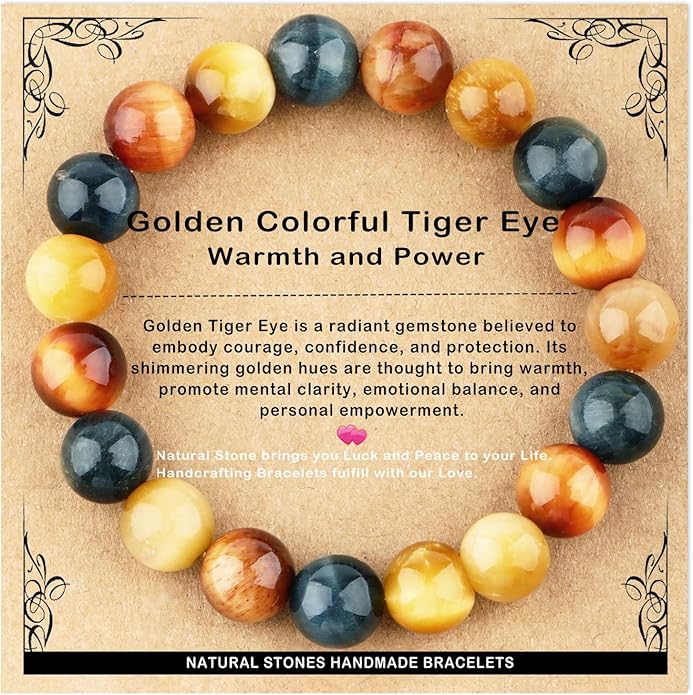 - šæ Natural Gemstone with Unique Beauty: Each bracelet is handcrafted with genuine Golden Colorful Tiger Eye beads. No two stones are the same, giving each piece a unique pattern and natural energy.