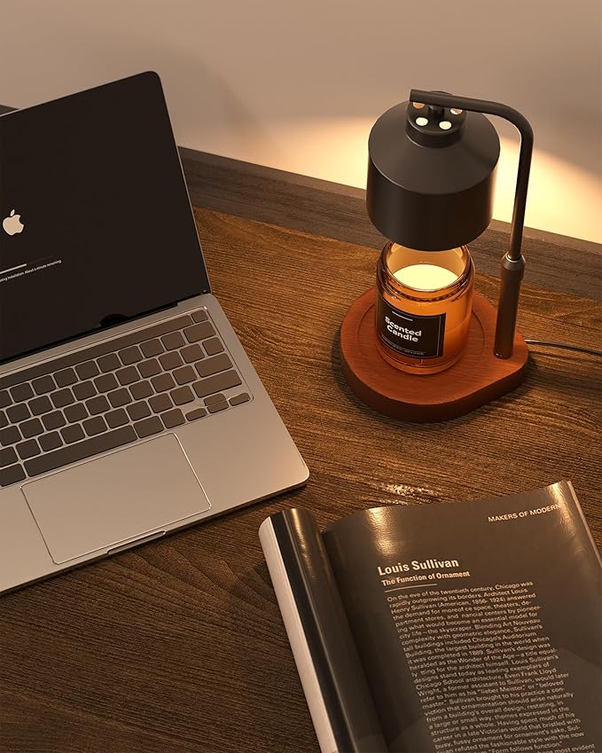 - Simple Design,Quality Life: The teardrop shaped base with natural walnut wood is warm and textured, and the classic black iron shade and pole show the simple and modern aesthetics. It is not only an efficient wax melting tool, but also a piece of art to enhance your home style, injecting a sense of sophistication and elegance into your space.