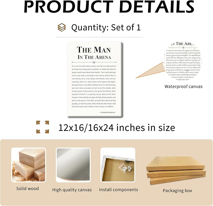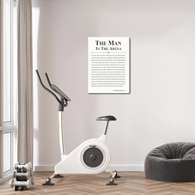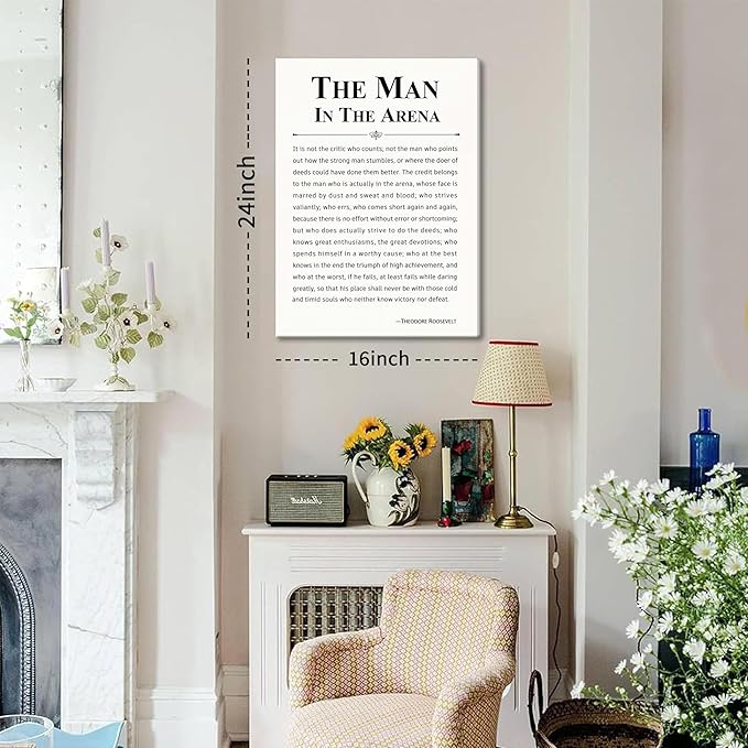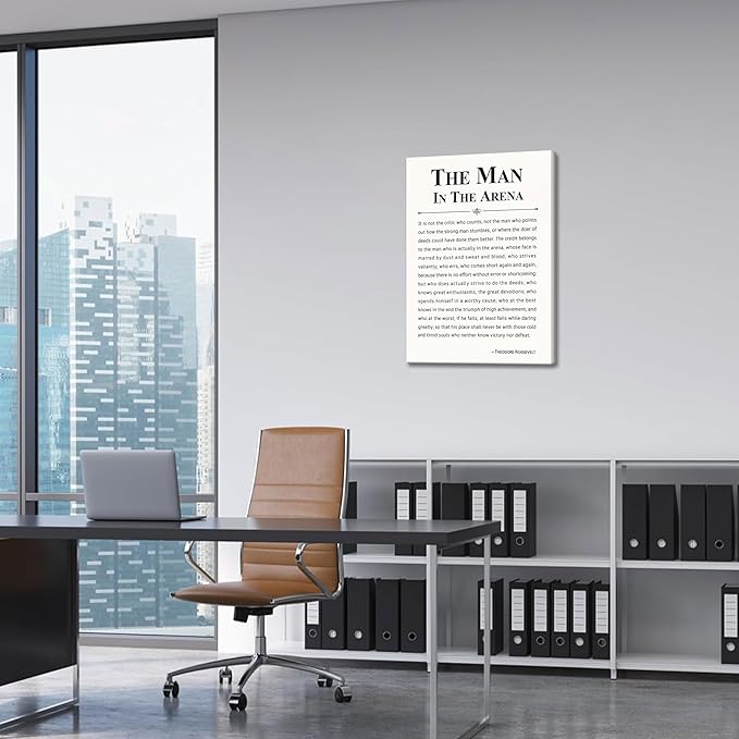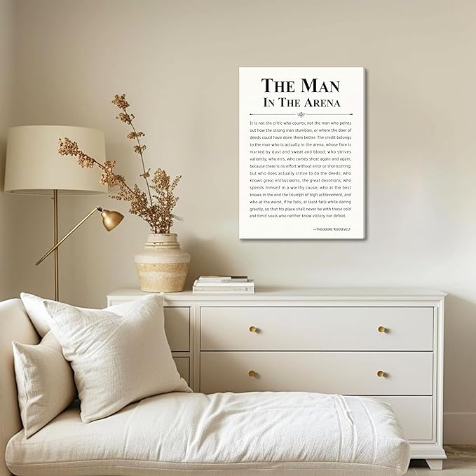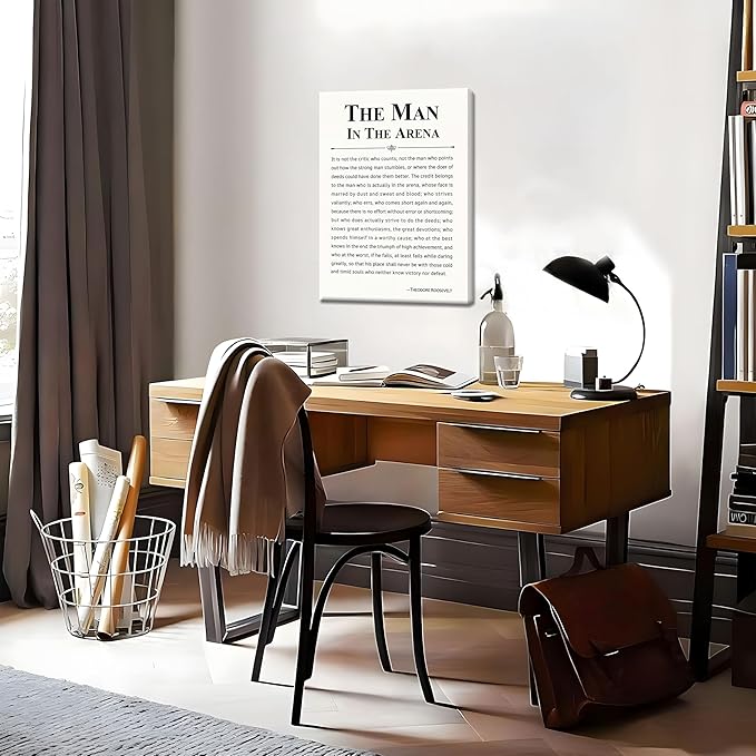 - 【Roosevelt’s “Man in the Arena” – Motivational Wall Decor for Men】 This motivational Roosevelt quote print brings timeless inspiration to life with “The Man in The Arena” speech. A bold daring greatly quote poster for those who lead, fight, and never give up. Perfect motivational wall decor for men who thrive on challenge and purpose.