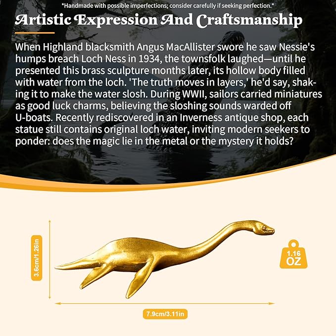 - Premium Brass Craftsmanship: Made from durable solid brass, this Loch Ness Monster figurine is designed to last, ensuring it remains a captivating part of your collection for years to come.