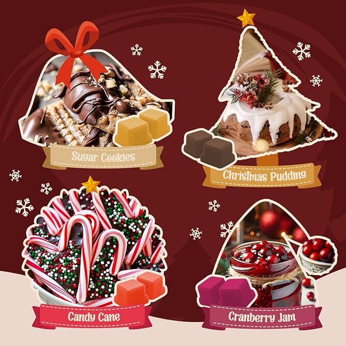- Perfect Holiday Touch: More than just scented wax melts, these wax cubes are a simple way to add cheer to any space. Whether you're baking cookies, decorating the tree, or relaxing by the fire, our wax melts tarts create a cosy, festive mood all season long.