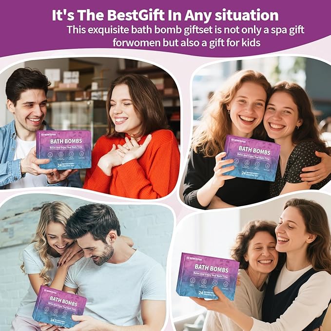 - LUXURIOUS SET: Contains 24 unique bath bombs infused with different essential oils for a variety of aromatic bathing experiences