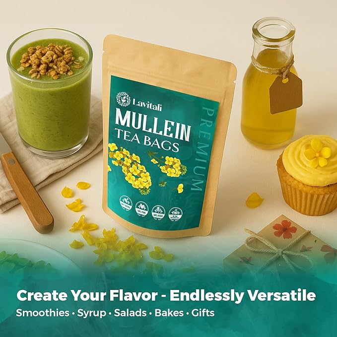 - 🌱 VERSATILE USES — Beyond steeping, this piece adds depth and character to smoothies, baked goods, or even syrups. Keep a small bag of dried mullein in your kitchen and explore creative recipes that highlight the natural herbal notes of this herb tea—from breakfast to dessert.