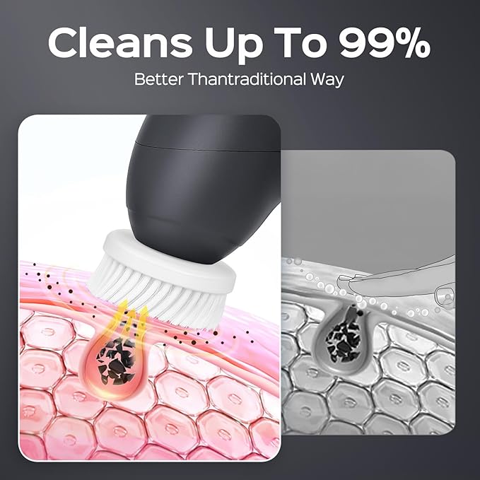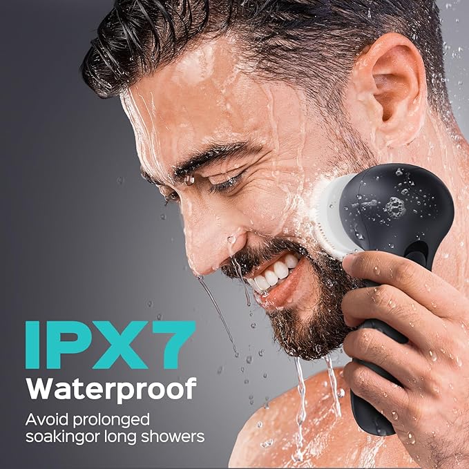 - Waterproof & Portable for Travel and Shower Use Engineered with 100% waterproof design, this rechargeable cleansing brush is safe for shower use, making skincare routines easier and more efficient. Its lightweight, compact body fits perfectly into travel bags, ideal for business trips, vacations, or gym use. With cordless convenience and long-lasting durability, it offers hassle-free cleansing wherever you go. From home bathrooms to post-workout cleansing at the gym, this face scrubber ensures consistent care for men, teens, and those with sensitive or oily skin on the move