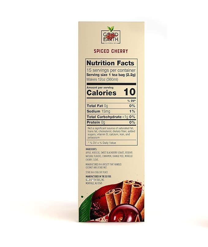 G00DEARTH Herbal Tea Spiced Cherry Flavored, Pack of 60 Teabags, Sensorial Blend, Natural, 15 Bags Per Box (Pack of 4) a Total of 60 Biodegradble Teabags