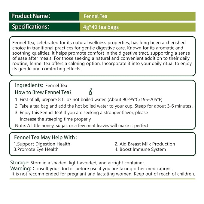 - 【Health Guardian】: Fennel, a popular digestion aid with fiber that benefits gut health, is also a tasty, soothing tea great for sharing with family/friends anytime—especially in the evening to calm and aid sleep.