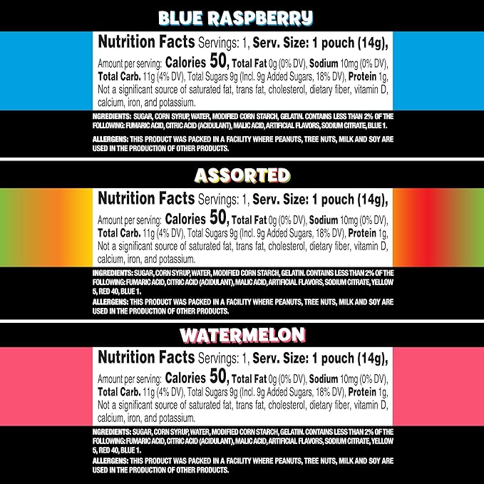 - Snack-Sized & Shareable: Individually portioned pouches make it easy to enjoy one and save the rest—great for lunchboxes, car rides, and candy bowls