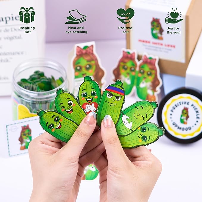 - π WHAT'S INSIDE THE PICKLE JAR: Includes 60 folded affirmation cards with fun pickle expressions and blank notes for personalized messages β thoughtful, cheerful, and fun to open daily.