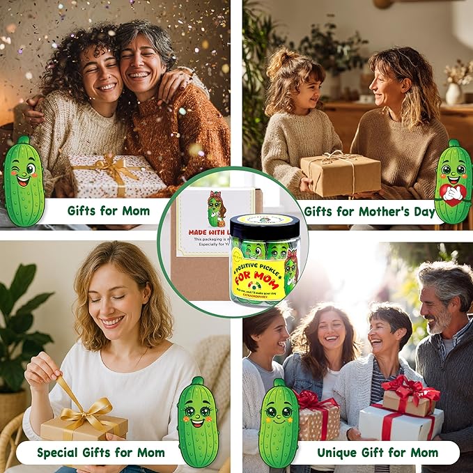 Motivational Pickle Jar for Mom β 60 Affirmations & Positive Quotes | Funny Gift Idea for Mothers, Adults, College Girls | Self Care, Positive Cards, Just Because Gift, Cute Desk Decor