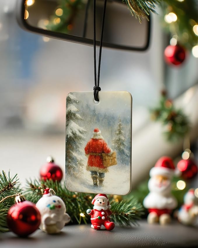 Winter Christmas Berry Car Air Freshener 4 Pcs, Rustic Winter Santa Reindeer Snowman Hanging Air Freshener for Cars Closet Drawer Books, Christmas Car Accessories Mirror Decor for Women