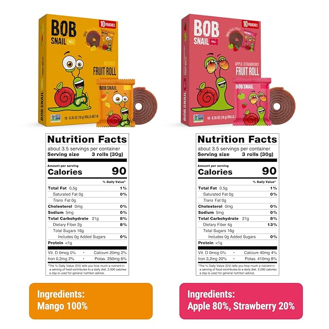 Bob Snail Exotic Mix Fruit Roll Ups – Healthy Sweets, Real Dried Fruits Snacks, No Added Sugar, Vegan, Nut Free, Candy for Adults and Kids – Flavour 50 pcs, 500g (Mango & Strawberry)