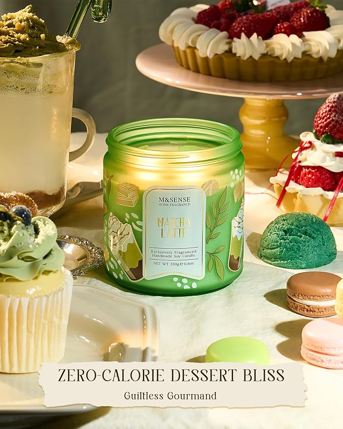 M&SENSE Matcha Latte Scented Candle, 11.6oz Natural Soy Wax, 70 Hours Long Lasting Clean Burn, Green Tea Creamy Aroma for Stress Relief, Non-Toxic Relaxing Aromatherapy Gifts for Women