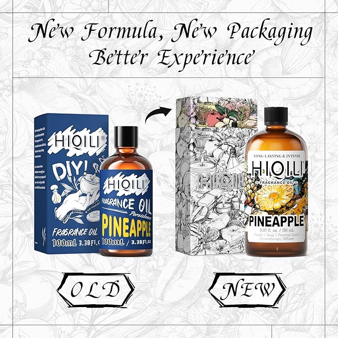 HIQILI Pineapple Fragrance Oil for Diffuser, Soaps, Bath Bombs, Candles Making, Bright Scents for Home, Car & Office - 5.07 Fl Oz