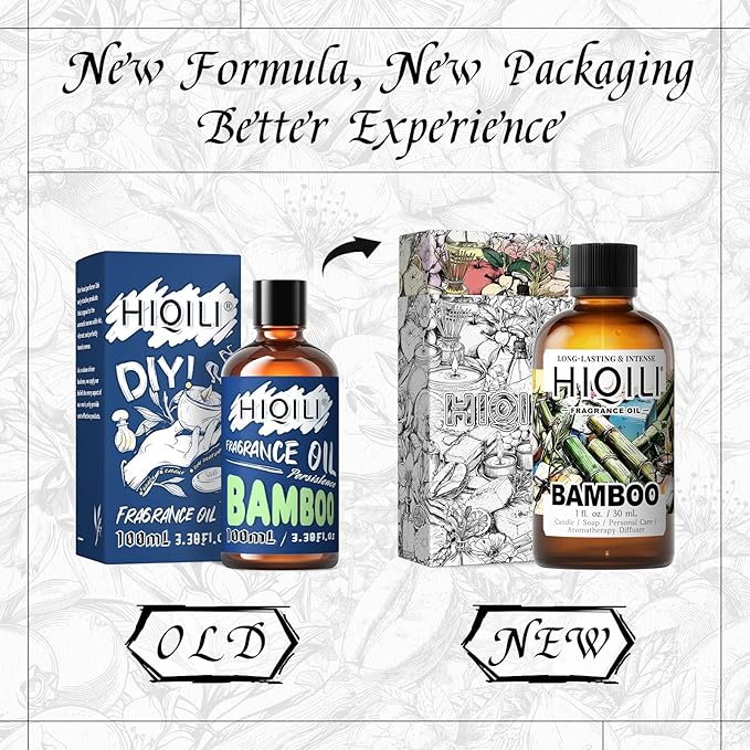 HIQILI Bamboo Fragrance Oil for Scent Diffuser, Idea for Candle & Soap Making, DIY Room Air Fresheners, New Car Scent - 1 Fl Oz